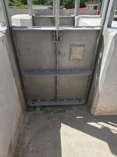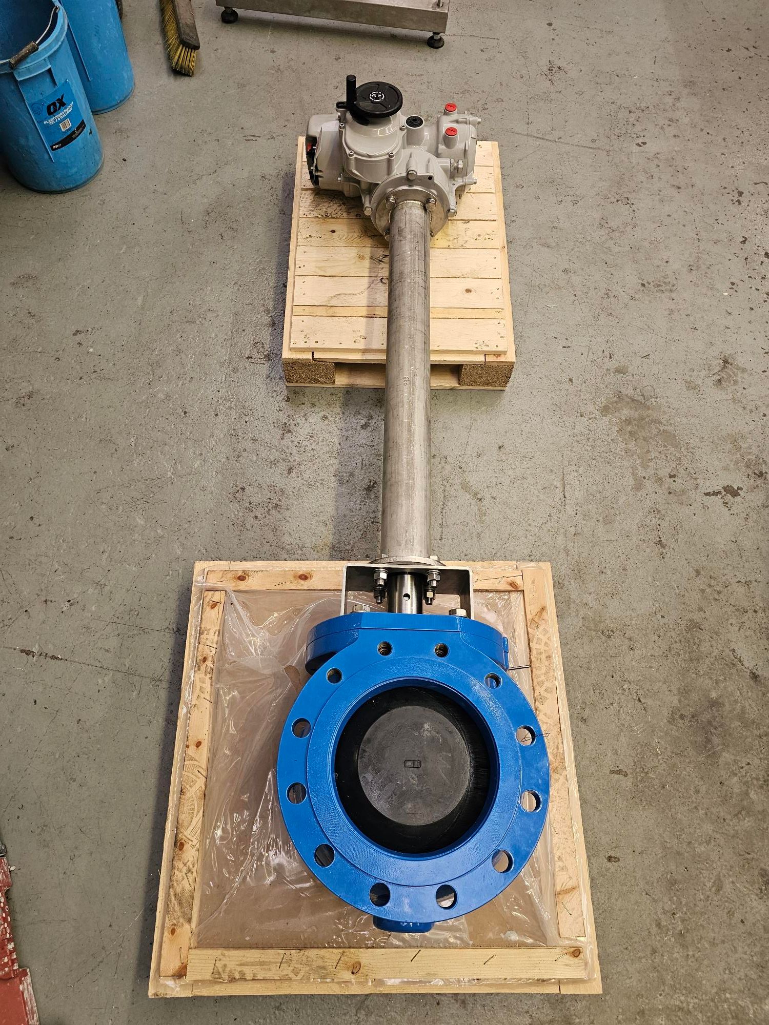 Valve, shafting, pedestal and actuator ready for installation.