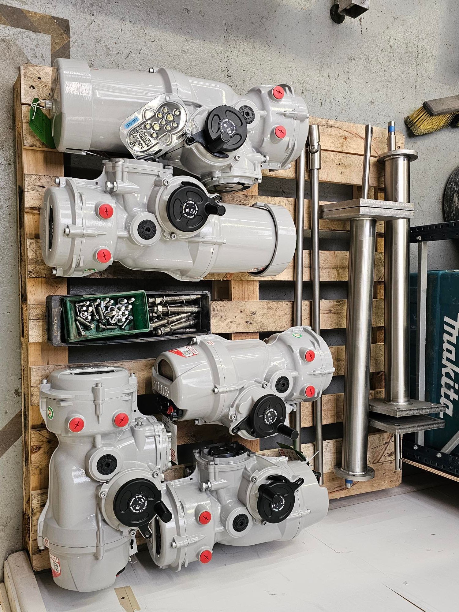 Valves and actuators ready for installation.